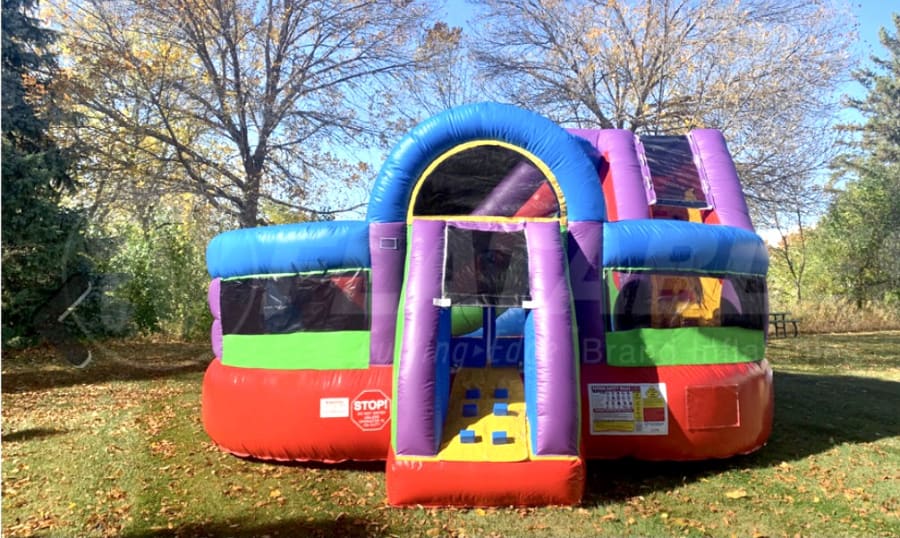 You asked and we delivered. We're happy to introduce our new line of Wet/Dry Combos including this eye-catching Wacky Adventureland Our Compact Combo Inflatable is built for those who want to have the WOW factor at any event. Featuring a spacious bouncing areas with an Entanglement™ game mat sewn on, basketball hoop, and slide to provide hours of fun. For added safety, this unit features an X-TRA Grip climb cover that reduces slips and helps to keep kids safe. The unit was designed with mesh sides all around to have full visibility for parents and spectators.
