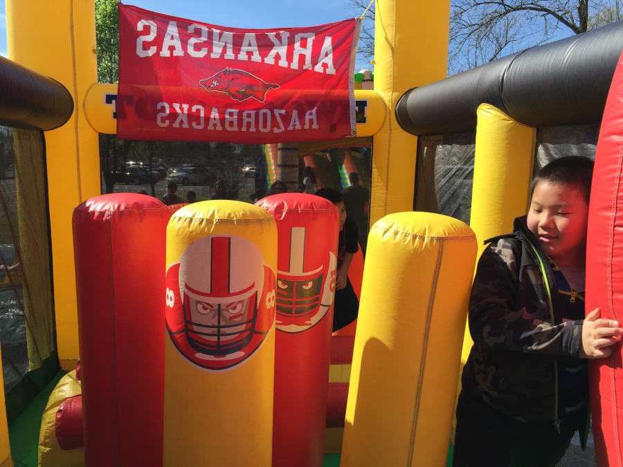 Are you ready? If you are a football fan, this commercial obstacle bounce house is a great item to have at your party or event. The GridIron Allstar Gameday Bouncer is perfect for outdoor and indoor events, rentals, parties, schools and booster clubs. The Gridiron Football Challenge is red and includes fun football graphics both inside and out. An XL Razorback Flag is also included that can boost team spirit and FUN!! The design integrates the theme of a Football Helmet bouncer with an obstacle entrance, plus a slide and play area that is also a ball pit. This bouncer is recommended for kids 4-12 years of age.