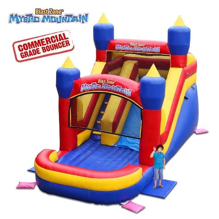 The Mystic Mountain Ultra Slide can be used dry year round. This monster party slide inflates in just seconds, and makes a serious impression at 16.6' tall x 23' long x 13.5' wide! Fun safe play for 2 riders at a time on the slide (many more can play with it at the party!), this is great for parties, events, or everyday use. This Ultra Slide features an enclosed climbing lane, a dry slide with removable cover, entry pad and more!