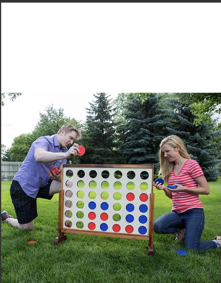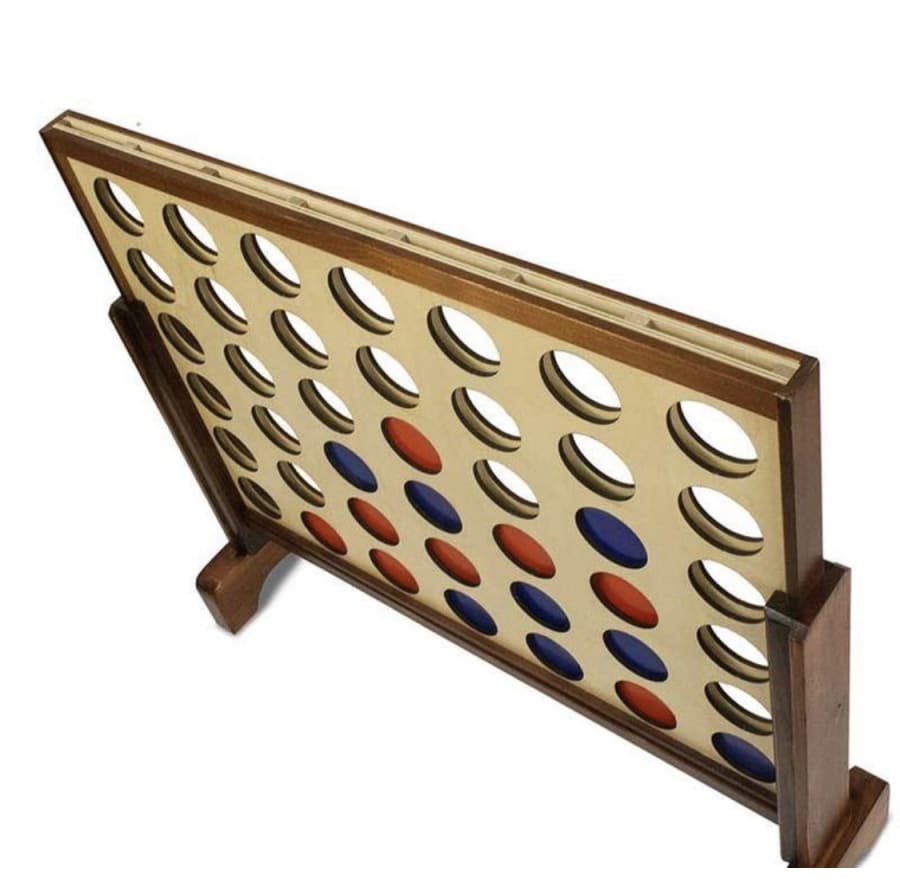 Mega Connect 4 -Get ready for some MEGA FUN with the new Mega Connect 4 Game! Perfect for all ages. This waist-high Connect 4 game is a great party starter! Use the giant pieces to get 4 in a row. When the game is over, just slide the bottom wood piece out to get the pieces.