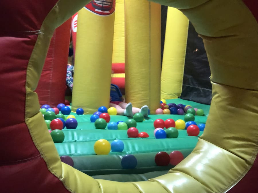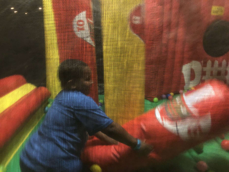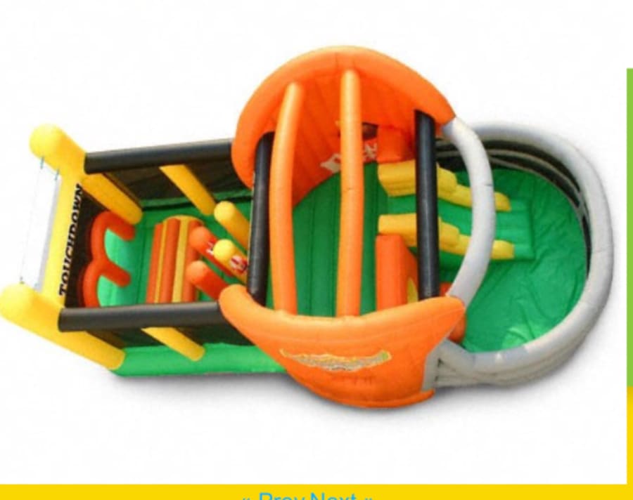Football Helmet bouncer with an obstacle entrance, plus a slide and play area