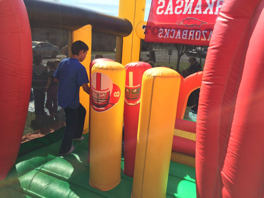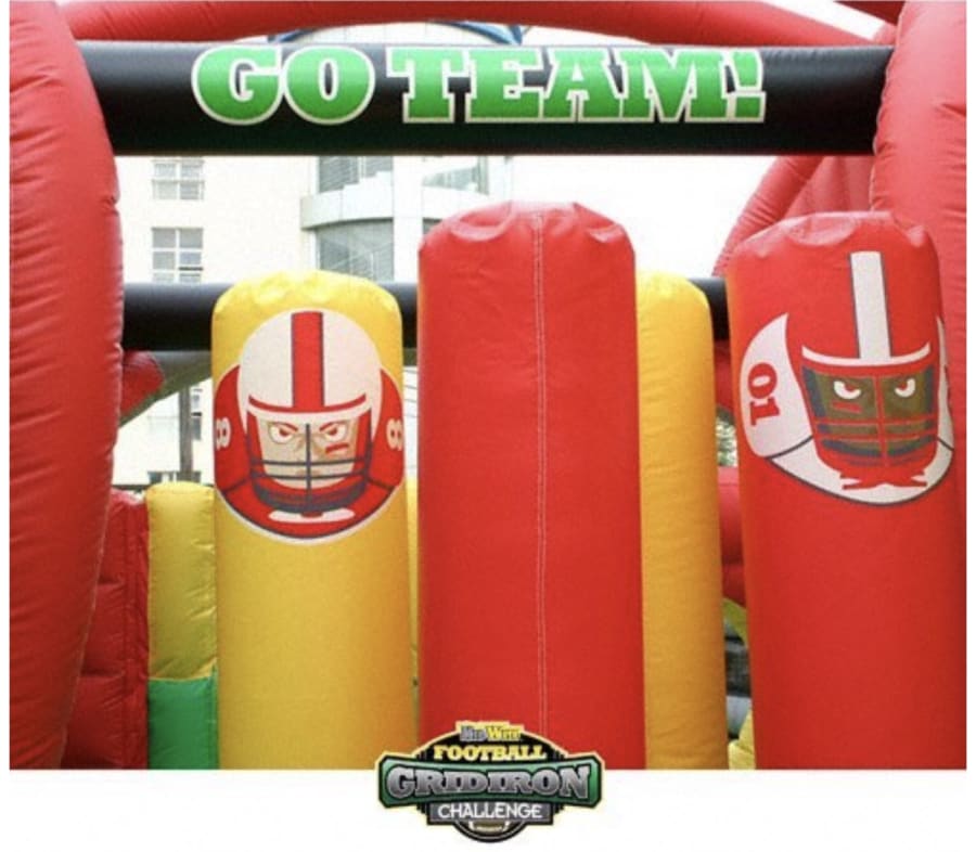 Are you ready? If you are a football fan, this commercial obstacle bounce house is a great item to have at your party or event. The GridIron Allstar Gameday Bouncer is perfect for outdoor and indoor events, rentals, parties, schools and booster clubs. The Gridiron Football Challenge is red and includes fun football graphics both inside and out. An XL Razorback Flag is also included that can boost team spirit and FUN!! The design integrates the theme of a Football Helmet bouncer with an obstacle entrance, plus a slide and play area that is also a ball pit. This bouncer is recommended for kids 4-12 years of age.