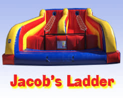 This is a race against an opponent and a test of your own skill. Each of two competitors tries to climb up the rope ladder. The one who makes it to the top first wins. Of course, if you fall, there is a nice soft inflatable floor to catch you. Great test of balance and coordination for all ages and a lot of fun!