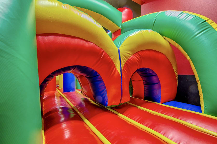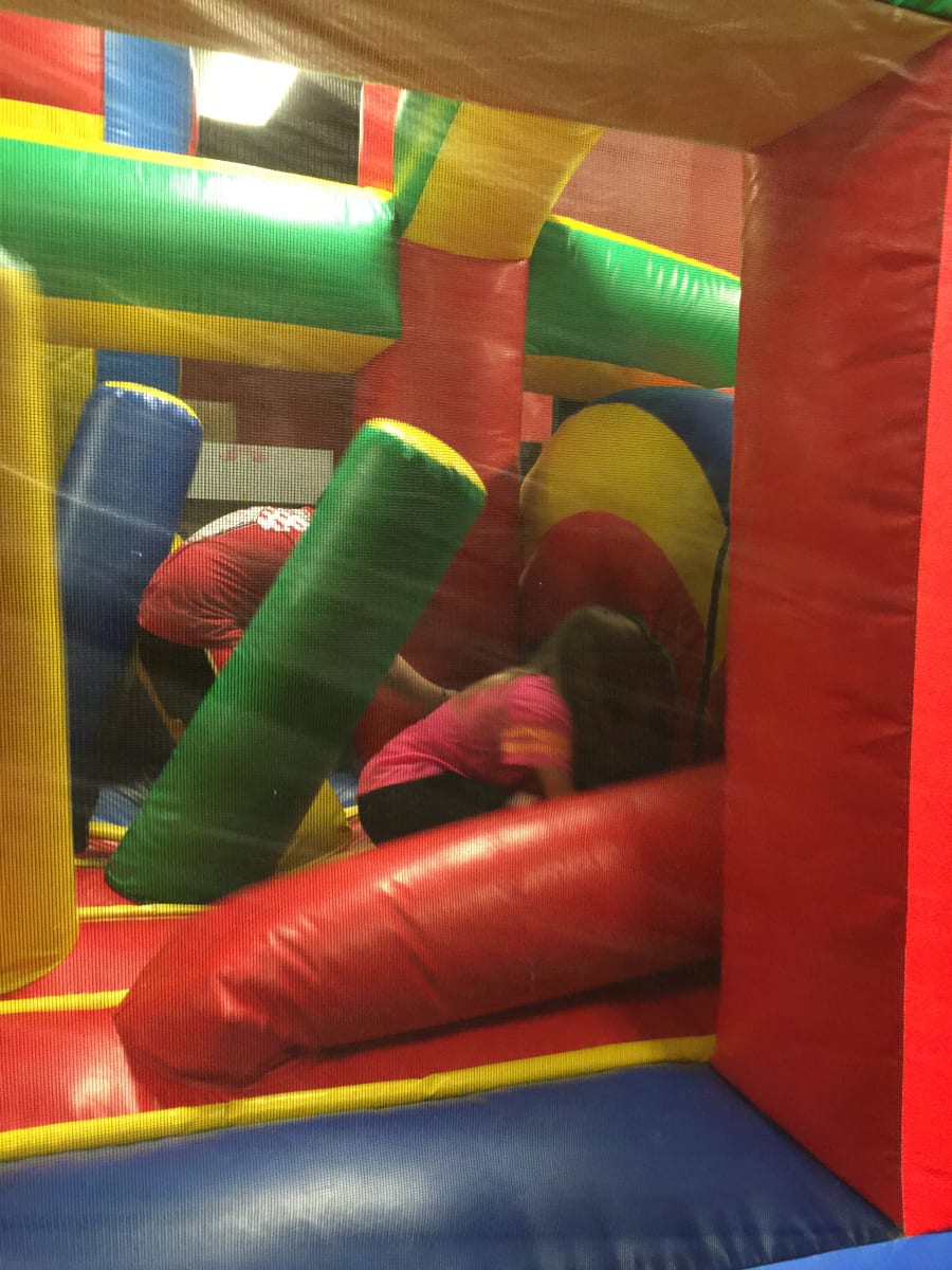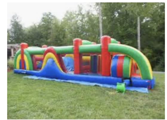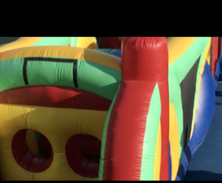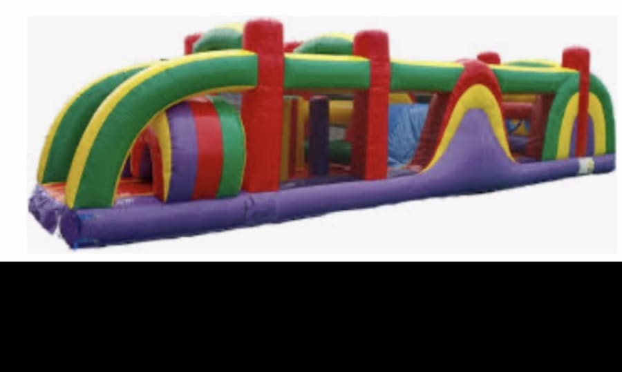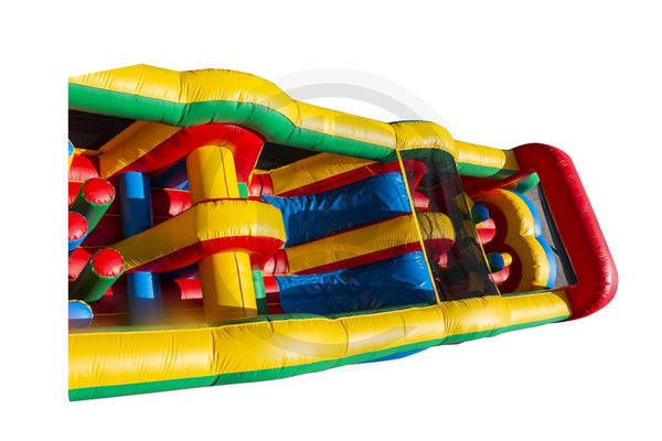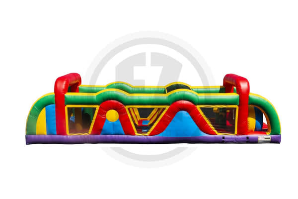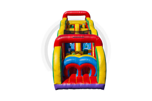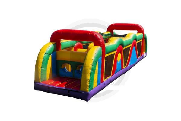 38 Ft Rainbow Run Obstacle Course Squeeze through tunnels, jump over barriers, slip underneath bars, and push your way past any obstacle that comes your way while trying to move as fast as possible! Dimensions: 38'x10'x10'