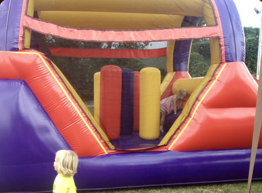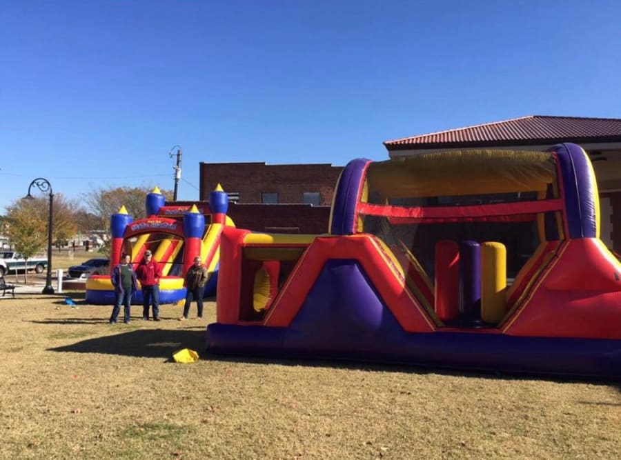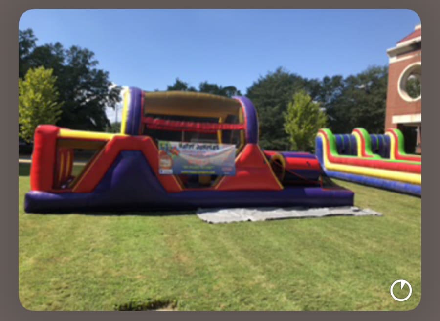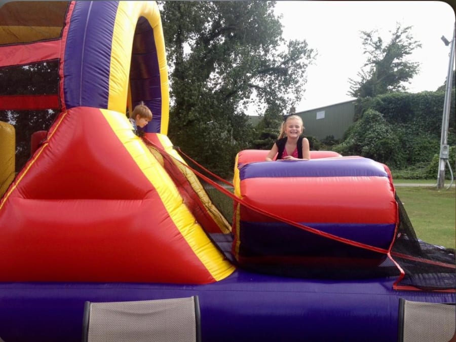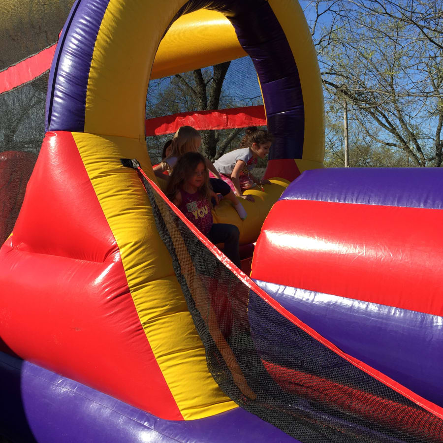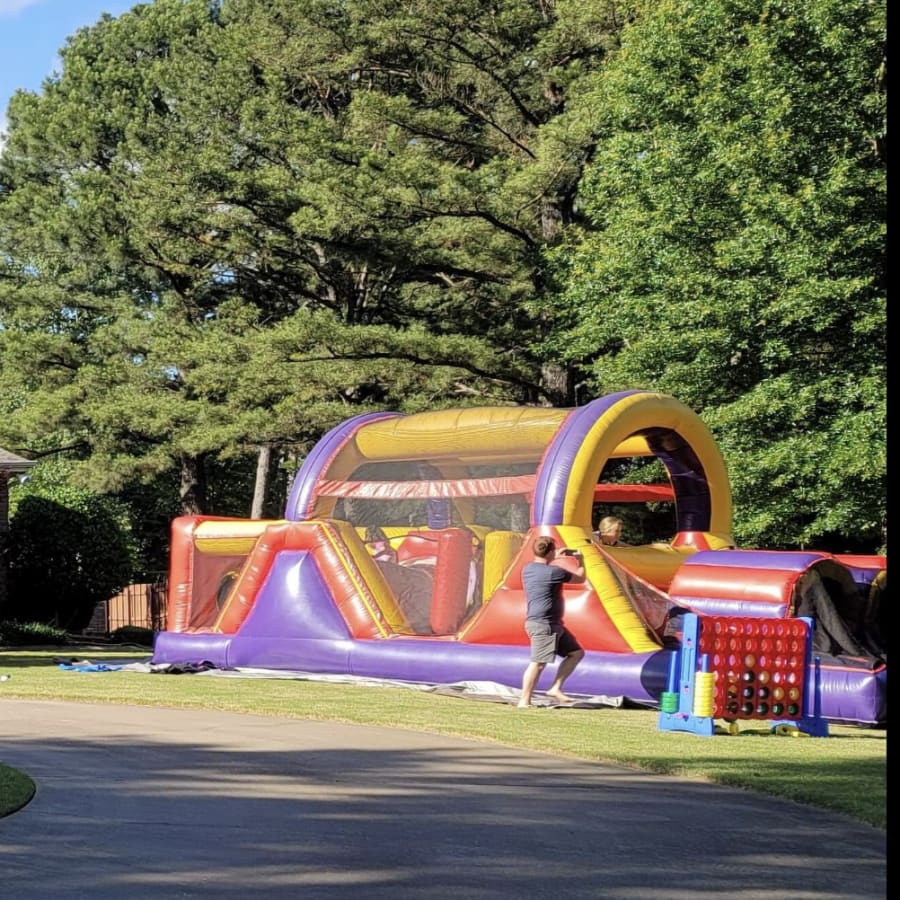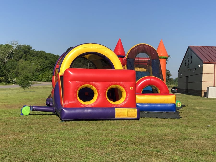 Ninja Jump's Backyard Obstacle Challenge offers 30 feet of challenge obstacle entertainment in one unit. This inflatable play structure takes participants on a journey crawling through tunnels, maneuvering around horizontal and vertical pop-ups, with stamina-building climbing and descending along the way! This sleek, low-profile Backyard Obstacle Challenge provides a bright, primary-colored purple, yellow and red theme and its arching design will attract attendees and keep them entertained. This inflatable obstacle course can be an amazing centerpiece for any backyard party. The inflatable play structure begins with a front-loading obstacle entrance, taking participants through tunnels and pop-ups to facilitate maneuvering skills and build confidence. The challenge obstacle then leads to an exciting front-exiting climb and slide, all to guarantee hours of enjoyable physical activity. Each inflatable play structure has mesh windows for easy viewing,