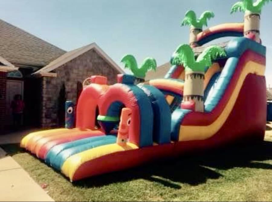 LOOKING FOR SOME WET OR DRY FUN? LOOK NO FURTHER THAN THE BIG KAHUNA WET / DRY FAMILY SLIDE. FEATURES A LONG TIKI THEMED LANDING PAD FOR DRY USE OR AN XL POOL AT THE BOTTOM OF THE SLIDE FOR A WET USE. FUN THEMED SLIDE FOR THE WHOLE FAMILY!