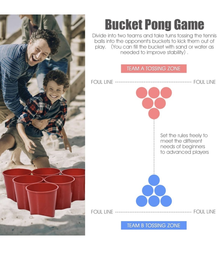 Yard Pong is the ultimate beach, pool, poolside, backyard, camping, tailgating and outdoor game family and friends love playing.Our Tailgate Game Balls do not bounce or roll far making them perfect for playing on hard flat surfaces. So no more having to chase balls around! Our Hybrid Game Balls and Bucket Pong Balls float on water and provide different game play experiences. You can read more about the differences in our game balls below. BucketBall is the original yard pong game and offers the highest quality products of its kind. BucketBall is a great addition to other giant outdoor games such as giant tumbling timbers, ladder toss, bottle bash, tidal ball, yard dice, kan jam, cornhole, connect four, and more!